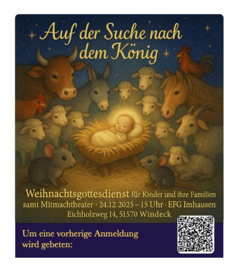 15:00 Uhr: Weihnachtsgottesdienst für Kinder und ihre Familien samt Mitmachtheater